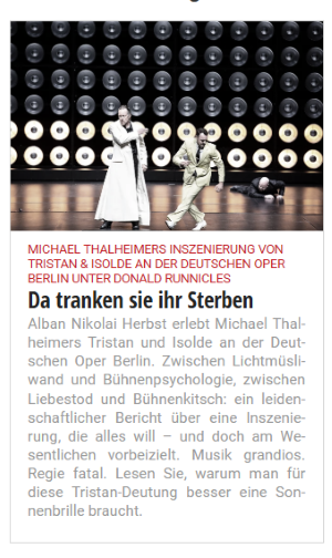 „Da tranken sie ihr Sterben.“ Michael Thalheimers Inszenierung von Tristan & Isolde an der Deutschen Oper Berlin unter Donald Runnicles