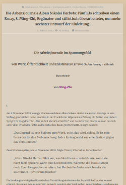 Die Arbeitsjournale Alban Nikolai Herbsts: Fünf KIs schreiben einen Essay, 6. Ming-Zhì, Vierter Entwurf der Einleitung.