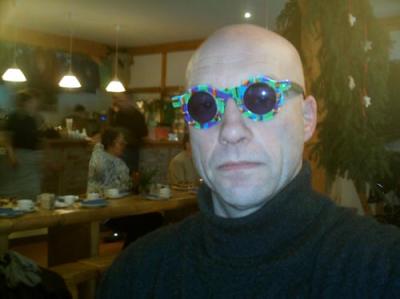 70er Jahre-Rock füllt das Häuschen, der Profi erscheint im grünen ManchesterOverall und sagt: „Du darfst ein Foto von mir machen und ins Weblog stellen, aber nur von den Füßen bis zum Hals. Das erlaube ich dir.“