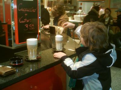 Sehr unkompliziert losgekommen mit dem Jungen. Vater-und-Sohn-latte macchiato am Ostbahnhof.