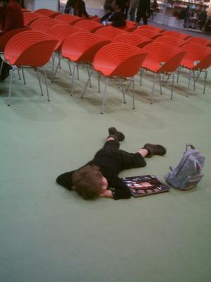 Ich bleibe fast eine halbe Stunde weg; als ich dann doch unruhig werde und die paar Gänge zu Schwarzkopf & Schwarzkopf zurückschreite, steht Adrian tatsächlich immer noch dort und blättert völlig begeistert in einem Folianten über die Kostüme der star wars-Serie. Ich bestelle es mit Kollegenrabatt, ganz glücklich sieht der Junge aus.