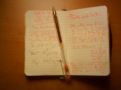 Schließlich spreche ich noch meine eigenen Kommentar-Partien; hierbei hören – als quasi-Regie – die beiden Damen korrigierend mit, und sie greifen auch, sich zunehmend engagierend, gut und streng ein, während ich in einem der angeschlossenen Kabinen sitze, das Mikro und den Text vor mir. Es ist bereits 23 Uhr, als wir damit fertig sind. Noch ein Päuschen, dann beginnen wir, die noch ungeschnittenen Berliner Aufnahmen Otto Mellies’ durchzuhören und zu putzen. Gegen Viertel nach zwölf sind wir fertig damit, ich telefoniere um ein Taxi und bin dann auch recht schnell im Hotel, wo mir nach einem letzten Bier ist. Irgendwelche Filmleute stehen in dem eher kleinen Raum herum; parallel werde nämlich, erzählten mir nachmittags Taxifahrer, in Baden-Baden ein kleiner Filmkongreß abgehalten. Auf dem Tresen der Bar notiere ich, was mir für morgen wichtig ist, ins Notizbücherl.