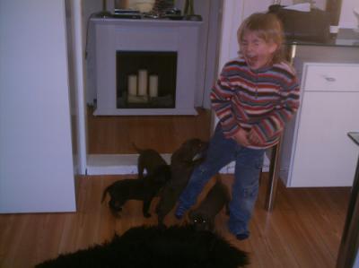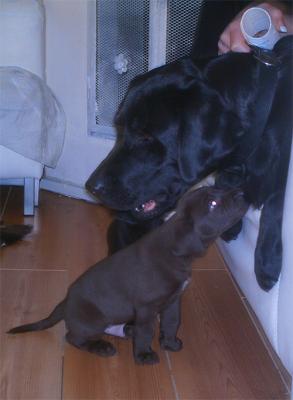 Der Junge und ich ziehen die paar Schitte zu Alexandra hinüber, um die Labradorwelpen anzuschauen. Adrian ist völlig verzückt, ist auch völlig aus dem Häuschen; die kleinen Hunde und die ziemlich große Hündin machen ihm ganz ebenso Angst, wie sie ihn locken: wieder erlebe ich, was intensives Leben bedeutet:: niemals Eindeutigkeit, sondern Ambivalenz::: ‚der beißt mich!’ zugleich und Zurückschrecken und doch immer wieder die Hand hinstrecken wollen.