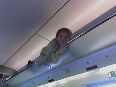 Zurück. Der Zug war derart voll, daß ich wegen der beiden Jungen den Übergang in die Erste Klasse zahlte. An Arbeit war dennoch nicht zu denken. Es gab kaum Bewegungsfreiheit… nun ja, wenn man von der Lösung meines Sohnes absieht:
