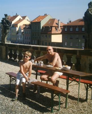 Der Junge schläft, meine Haut brennt vor Sonne; auf Adrians Hochbett, in dem ja auch ich, neben ihm, schlafe, steht die Hitze wie über dem Bamberger Bett. Der Bursche hat mein Naturell geerbt und genießt’s. Bis 21 Uhr war er auf, bis etwa 21.45 Uhr las ich vor. Da er dann immer noch nicht schlief, sagte ich: „komme gleich wieder“, gab ihm einen Kuß, kletterte hinunter, stöpselte in der Küche den Laptop ein, wartete fünf Minuten, ging nachschauen: Da war der Lausbub bereits hinweggetreten.