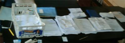 Wegen des Schwingbodens in der Arbeitwohnung kann ich mich, höre ich mit dem Linn Schallplatten, nur auf den Ballen und sehr vorsichtig bewegen. Sonst springt die Nadel über die Rillen. Da ich normalerweise fast nur am Schreibtisch sitze, merk ich das sonst gar nicht so; jetzt aber stehe ich, zuordnend, an dem zweiten Arbeitstisch, erst einmal die Belege von zweieinhalb Jahren auseinanderfriemelnd.