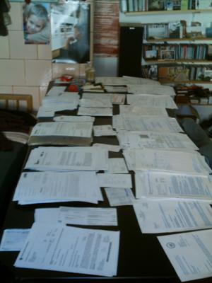 Immerhin mal wieder ein w i r k l i c h e r latte macchiato; eigens Milch dafür besorgt. Stoisches vor-mich-hin-Sortieren im übrigen. Nichts an sich rankommen lassen, was an ökonomischer Misere aus diesen Belegen hervorgeht. Auf der Musik treiben.