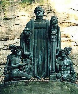 Erwähnenswert ist nur, dass der Schöpfer dieser steinernen Drohung das größte Wagnerdenkmal aller Zeiten schuf. Es steht in einem kleinen Tal, nahe der Sächs. Schweiz.