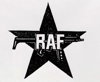 Nun ist es mit dem Maschinengewehr, beziehungsweise der MP, so eine Sache. Ikonographisch wird es in deutschem Zusammenhang ganz sicher sofort mit der RAF assoziiert – da müßte dann etwas gefunden werden, daß dies bricht.Mir fiel analog – eben nur als ein Beispiel – etwas ein, das sich collagiert wie die beiden gekreuzten Piratenschwerter unter einem Totenschädel verhält: .