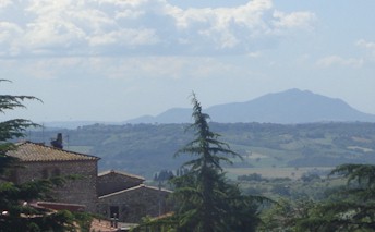 [23.5. – 20.52] Kein Schwof heute? Keine Blasmusik? Keine Disco unter freiem Himmel? Denn seit Samstag schon feiert bis zum abschließenden Feuerwerk am kommenden Sonntag das Dorf seine vergnügte Woche, wie hier allerorten den ganzen Sommer hindurch Dorf für Dorf für Dorf solch eine Woche hat. Keine Ahnung, wo der Rummel stattfindet. Bei meinem ersten Gang um den aus drei parallelen Straßen bestehenden, auf einem vorspringenden Felsrücken liegenden alten Ortskern ließ sich nichts erblicken. Nur die Fähnchen an den Häusern, unten blau-weiß, hier oben rot-weiß. Der Bar-Tabacchi-Inhaber mit seiner unfetten Leibesfülle und einem weißen Kinnbart duzte mich beim zweiten Zigarettenkauf. Wohingegen ich mich in fremder Umgebung eher sieze. Vertraulichkeiten zu mir selber finden zu Hause statt, somit auch das Duzen. Und schließlich das Feuerzeug. Ein schwarzes hatte er nicht, also wählte ich ein grünes: Das passe auch irgendwie zu der Camel-Packung, meinte er, den ich daraufhin etwas ungläubig anschaute.