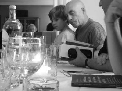 die Dichter, na sicher, sie bekommen schließlich ein Honorar, reisen an. Dabei kann man nicht sagen, daß sie einander unbedingt mögen, ästhetisch differieren sie teils extrem – mit dem „gemeinsam etwas aufführen“, „gemeinsam etwas veranstalten“ schwingen selbstverständlich auch die gegenseitigen Vorbehalte durch die eine „Haupt“straße des Orts. Zumal dann, wenn diesmal auch eine der deutschsprachigen Großkritikerinnen, >>>>> Sigrid Löffler, dabei ist und aus dem strengen Blicken gar nicht herauskommt, das nicht weniges von Studienräten hat, die Klausuren abnehmen wollen (aber sie schwärmt auch, zugegebenermaßen im ihr physiogomisch möglichen Ausmaß, also verbal; toll freilich ihr unbedingter Satz: „Wir (die Kritiker) übersehen k e i n e n, der’s wert ist“; da spiralt dichterseiner vor Freude, gibt aber auch unumwunden gerne zu, daß die Frau elegant zu formulieren versteht – und ist insofern sofort versöhnt). So reden denn tatsächlich intensiv die Freunde, auch die gemeinsam in eine Richtung schwimmen, mal ausgreifend paddelnd, mal eher vorsichtig und mit dem spitzbübischen Lächeln einer Reserviertheit, die mehr in den Formulierungen lebt als im Leben… oder lieber sich g a r nicht erst einläßt. Ich meine, man ist ja auch nicht im Stadion und begeistert sich an Weltmeisterschaften (Sie wissen schon: in der Germanistik hat der Fußball die Ironie als Fetisch fast schon eingeholt). Hier und da gegenseitige Versicherungen, wie gerne hätte man einander gehört, aber die Umstände,