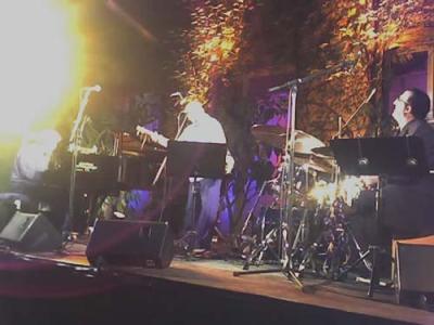 Den Höhepunkt – für mich – gab’s dann abends mit dem Joachim-Kühn-Trio im Innenhof der Musikhochschule.Die befreundeten Kollegen, als sie „Free Jazz“ hörten, mochten nicht mitgehen; Scheu und Unverständnis nicht- bzw. freitonaler Musik ist gerade bei Literaten signifikant. Ich fand das immer schon eigenartig. So ging ich mit Heinfelnder vom SWR hin… und es war grandios… jedenfalls im ersten, „freien“ Teil; im zweiten spielte man eine Art Brecht-Medley, wobei je der Song variant vorgeführt wurde und dann die Improvisation begann.Die nicht so arg viel brachte, weil das musikalische Material der Brecht-Songs einfach zu banal ist, man hat überhaupt keinen Stoff, über den sich improvisierende Musik gestalten ließe. Das wurde aber auch sowas von schlagend klar….Stellen Sie sich vor, ein Weltklasse-Komponist wollte Variationen über Roy Blacks „Ganz in weiß mit einem Rosenstrauß“ schreiben – dann wissen Sie ungefähr um das Problem. Man hätte das also sein lassen und einfach nach Eigenem weitermusizieren müssen, der Abend wäre so berauschend geendet, wie es die erste Stunde des Abends tatsächlich war… zumal in dieser Konstellation aus Klavier (Joachim Kühn), Schlagzeug (ganz großartig: Ramon Lopez) und Oud (der Marokkaner Majid Bekkas). Daß man hier wirkliche Weltmusik geboten bekam, hatten die vielleicht siebzig Zuhörer mitbekommen; an sich hätte die Schlange bis auf die Straße stehen müssen……aber man proppevollte lieber den Pop der Goldenen Zitronen…. zu dem mich Heinfeldner erst verführen wollte, ich ging auch mit, aber wir kamen zu spät, und ich kriegte grad noch die letzten akte mit – abschreckend, fand ich, schon im Grundschlag („Beat“).
