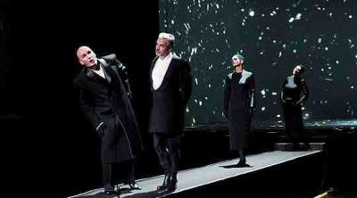 Da finden sich, so vital auch alles daherkommt, tatsächlich massiv Momente eines Alterswerkes: Anspielungen, die zitathaft, aber keine Zitate sind (außer einmal einem Bach-Motiv: „Oh Ewigkeit, du Donnerwort“; Peter Petersen stellt das im wie immer schönen Programmbuch der Staatsoper deutlich dar), Anspielungen als Rückgriffe, wie wenn es gebliebene, bleibende Erinnerungen wären, die man nicht mehr genau zuordnen kann, indes möchte man ihnen verwehren, daß auch sie bald gehen; auch schon mal kurze naturalistische Beschwörungen einer Natur, die nun aber gerade von dieser Inszenierung wegradiert wird, quasi-Arkadisches in christlichem Gewand – Erlebtes möglicherweise, persönlich Wahrgenommenes, wenn der Komponist im Garten saß, während er komponiert hat; das ist nicht ohne Romantik, auch nicht ohne – wahrhaftige – Sentimentalität, aber immer gebunden über Henzes Form, über die Formung, wie sie nach wie vor die als musikalisches Skelett fungierende, typisch henzesch verwendete 12-Ton-Systematik erzwingt – da ist kein Nachlassen zu merken, schon gar nicht ein Paradigmenwechsel, wie er sich etwa bei Penderecki vollzogen hat. Daß zumindest beim ersten Zuhören Schönheiten des Librettos untergehen („Still wohnt die Sonne ein“, heißt es in der Schlußszene; ein Satz Lehnerts, dessen Lyrik lange nachzulauschen wäre), liegt in der Opernsache selbst begründet – vorausgesetzt, die Oper findet häufige Weiter-Interpretationen. Dann wird man vielleicht eines Tages auf ihn ebenso lauschen, wie man heute auf Wendungen Hofmannsthals bei Strauss lauscht – weil man sie weiß und dann darauf bebt: wie wird das intoniert? Man hat sie – wie so oft, bevor man Musik „versteht“ – immer und immer wieder gehört und ist schließlich auf sie so eingestellt, daß man Abweichungen überhaupt erst erfahren kann.Hier genau liegt das Hauptproblem der mussbach/eliasson’schen Inszenierung. Und da steht sie für so viele andere, ob nun in der Oper oder im Schauspiel. All mein Gemäkel spielte überhaupt keine Rolle, handelte es sich um die Interpretation eines schon viele Male inszenierten, viele Male gehörten und erlebten Stückes, sagen wir des Falstaffs. Da ist dann nämlich jeder Eingriff, sofern er in sich stimmt, erlaubt – und zwar weil sich jede neue Auffassung eines Stückes mit anderen Auffassungen zu einem lebendigen Wirken zusammenschließt. Für eine Uraufführung aber, die, wie in der Gegenwart gängig, oft für lange Zeit, wenn nicht überhaupt die einzige Aufführungsversion bleiben wird, gilt etwas völlig anderes: Da ist nicht auf die ideologische Absicht eines Regisseurs, sondern einzig auf möglichst vollendete Werktreue zu achten; den inszenatorischen Spielraum geben hier alleine Libretto und Partitur vor; weder die psychische Befindlichkeit noch auch etwaig politische Absichten eines produzierenden Teams haben da etwas zu suchen. Felshöhle bleibt da Felshöhle, ein Wald bleibt ein Wald – und alleine dort, wo die Werkvorgabe undeutlich ist und/oder ganz bewußt Deutungen w i l l, darf sich eine vom Werk getrennte inszenatorische Absicht hineinschieben. Denn die Uraufführung eines Stückes w i r d zu dem Stück, sie bestimmt maßgeblich jede spätere Draufsicht und bestimmt damit eben auch das Überleben nicht nur auf dem Theater, sondern unterdessen und als Folge auch dasjenige auf Tonträgern. Uraufführungen bestimmen über Leben und Sterben eines Stücks; hier hat eine andere Verantwortlichkeit zu herrschen.