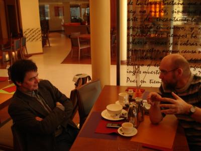 Der Aphorismus sagt einiges. Man bekommt das dann beim Frühstück mit. Noch immer nicht bin ich dem Orchester vorgestellt, aber ich setz mich jetzt halt hier- und dahin hinzu, geb meine halbironischen Honneurs und höre den Geschichten zu. Wie man etwa >>>> Inbal geliebt hat; darin schwingt auch Skepsis gegenüber Zagrosek. „Er läßt uns nicht atmen“, erzählt mir Intendant Schneider (der mich an seinen Tisch winkte, später), daß Musiker geklagt hätten. Eine altes Problem: die exakte Vorstellung, wie ein Stück zu klingen habe, mit den Vorstellungen der Orchestermusiker in eins zu bekommen – Didaktik nennten Pädagogen, was vermißt wird. Andererseits: Wozu? Ist man nicht ohnedies Musiker geworden, um zu arbeiten, um auszudrücken? (Ich selber, ganz sicher, tendierte auch zum Tyrannen… oder nicht? Es war, als ich erstmals mit >>>> Peter Lieck an einem meiner Hörstücke gearbeitet habe, eine tiefe Erfahrung mit einem Star. Als ich ihm sagte: „Geht es, Herr Lieck, auch weniger nasal?“ und alles um mich zusammenzuckte, sah er nur auf, fragte: „Wie meinen Sie das?“, hörte, dann sagte er „Danke“ und legte eine Interpretation hin, die nun wieder m i c h in den Schatten stellte… Künstlerische Arbeit funktioniert in Zwischenfeldern, die kaum definierbar, schon gar nicht normierbar sind. Man trifft sich im Ziel eines Ausdrucks.) Wiederum erzählt mir ein Cellist die hübsche Geschichte eines Kollegen, der Radio gehört habe und habe dabei ein Musikstück gehört, das ihn sofort gefesselt habe. Irgend etwas an der Aufnahme kam ihm bekannt vor, ja, er kannte das Stück, aber er wußte nicht, welches es war. Gespannt hörte er es zuende. Dann Absage. Und er erfährt, daß er selbst, der Cellist, es vier Wochen zuvor für den Rundfunk mit eingespielt hatte. „So verschwimmt uns das manchmal. Als ich begann vor vier Jahren, hätte ich das nicht geglaubt. Aber allmählich beginne ich zu verstehen.“ Aber dann wieder. „Wir waren bei dem großen Anschlag von Madrid hier, am Vortag noch war ich selbst von >>>> Atocha abgefahren. Abends sollten wir, hier in Valladolid, Mahler VI spielen, Sie wissen, die mit den Hammerschlägen im letzten Satz. Das war unter Inbal. Wir wußten nun nicht mehr, findet das überhaupt statt. Wir warteten. Es fand statt. Der Saal war voll. Und Inbal fand Worte fürs Publikum, dann begann er zu dirigieren. Ich bekomme noch heute einen Schauer, wenn ich dran denke. Wir spielten wie wahnsinnig, wir übertrafen uns alle. So hatten wir n i e gespielt. Da habe ich wieder gemerkt, was Musik v e r m a g.“