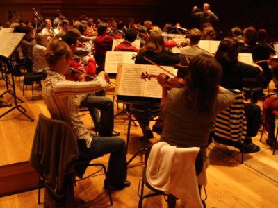 Heute abend, zur Aufführung, säße ich gern zwischen den Musikern und nicht im Saal. Ich möchte die Stimmung einfangen und auch aufnehmen, die während einer Aufführung im Orchester herrscht. Und es könnte sein, daß das auch klappt. Ich brauche eigentlich nur noch Zagroseks und des Orchestervorstands Okay. Aber, mit >>>> Buschheuer gesprochen: no jo, wenn nicht heute, dann halt beim nächsten Mal.