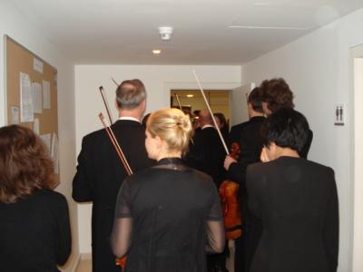 „Sind Sie nervös?“ frag ich vor dem Hotel die junge Geigerin. Es ist 16.45 Uhr, und die beiden Bussen stehen bereit. „Weshalb sollte ich?“ fragt sie zurück. Es war wohl die falsche Frage, die ich gestellt hab. Ohnedies hab ich ein wenig den Eindruck, in eine festgefügte Familie implantiert zu sein, die eigentlich nicht recht weiß, was sie mit jemandem Fremden soll. Meine Situation ist objektiv ambivalent, da ich, wie sich das für Familienmitglieder gehörte, mich einem Familiengeheimnis nicht beugte. Allein, daß ich beobachte, macht einen für ein Orchester suspekt, das auf eine DDR-Geschichte zurückschaut. Das ist mir durchaus bewußt. Nur beobachte ich offen.