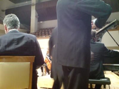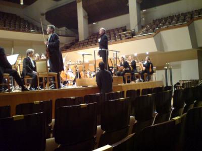 Dabei hatten die Zeichen gar nicht so gut gestanden. Nicht nur wegen der ausgefallenen Musiker, sondern zwischen Anspielprobe und der Aufführung nachts waren Arbeitern des Hauses zwei Kontrabässe umgefallen, die waren und sind es noch – kaputt. Das wird ein versicherungstechnisches Nachspiel haben, aber selbst, wenn wir’s gewinnen – einer Aufführung hilft das ja nichts. Glücklicherweise hatte um 19.20 Uhr die spanische National-Philharmonie gespielt, so konnte man Bässe leihen. Für die Instrumentalisten ist sowas dennoch, weil unvertraut, unangenehm, ganz besonders den Fingern, die hören. Und fünf Minuten vor seinem Einsatz brach Helge v. Niswandt das Posaunenteil dann tatsächlich ab; es zahlte sich aus, daß er sich abermals vorher um ein Ersatzinstrument hatte bemüht. Dann war der Transferbus viel zu früh am Auditorio gewesen, da war so viel Zeit, die wir bei einiger Speise in einem Tapaslokal mit einem Volke verbrachten, das in dem unter der Decke montierten Fernsehgerät ein Fußballspiel verfolgte und enttäuscht worden ist. Aber sowieso: Um 22.30 Uhr ein solches Konzert zu geben, das war man ja gar nicht gewöhnt… „Es ist halb e l f – was i s t das?“ fragte neben mir der von diesem Tag gebeutelte Ulf Werner, als er die Mengen sah, die den Auditorio füllten. „Klasse“, sagte ich nur, im Genick die Erinnerung an Frankfurtmainer Nachtkonzerte… vor Jahren… „klasse“. Ein hungriges Publikum, hungrig auf Musik, besser kann es nicht gehen, ein Publikum, wie’s schon in Lleida war. In der Pause wieder mein liebevolles Hickhack mit Schneider, der sich, wie ich, das >>>> Caixa Foro angesehen hatte und eher beödet war von der dort gezeigten Kunst, die e r in Häkchen setzen wollte. „Aber ich merk ja: Sie sind von allem begeistert…“ „Nicht von allem, aber g e r n e begeistert, ja.“ Worauf er mit einem Bonmot reagierte, dessen Einfall wirkliche Größe hat: „Alles nach Palestrina ist Niedergang in der Musik.“ Er grinste und fügte bei: „Na gut, es gab in Bach noch mal eine kurze Erhebung.“