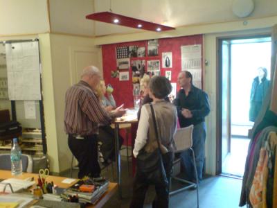 Wir arbeiten mit ein paar, aber immer nur sehr kurzen Pausen, fast die ganzen acht Stunden durch; mal muß ein Brot gegessen werden, aber imgrunde wollen alle immer nur weitermachen.