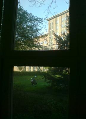 Das HörfunkStudio II befindet sich auf dem alten Rundfunkgelände des aufgelassenen Rundfunks der DDR ganz am Anfang Köpenicks: ein riesiger Komplex direkt an der Spree, so gut wie kaum genutzt, vieles zerfällt, ein paar kleine Privatstudios sind vorhanden, einzwei große Hörspielstudios, die bisweilen die ARD-Anstalten nutzen; ansonsten leerer Raum, verlassene Gebäude, die Rasen zu Wiesen, ungemähten, geworden, verwunschen stehen die Bäume.