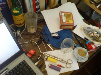 Lange mit dem Profi in der Bar gesessen und gesprochen; manchmal schweigen wir auch einfach nur, und bisweilen sagt wer einen Satz. Ich hatte das Celo dabei, weil ich heute hier in der Arbeitswohnung übernachtet habe; zuhaus ist Besuch, ich wich aus Platzgründen aus. Das hat manchmal den Nachteil, daß ich dann zu viel trinke und morgens nicht recht aus dem Bett komme, weil ich nachts noch irgendwelches Zeug im Netz unternehme.