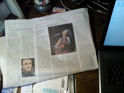 Bis knapp halb ein Uhr nachts mit dem Profi in der Bar gesessen und gesprochen. Es war eine warme Nacht dann, die Temperaturen sind wieder geklettert. Der steife Nacken wird langsam weich. Dennoch… was mich heute morgen sehr irritiert, das ist, daß mein >>>> Etta-Scollo-Artikel, den ich für die Frankfurter Sonntagszeitung geschrieben habe, nicht in ihr, sondern >>>> heute früh in der Normal-FAZ erschienen ist. Redakteurin Büning kündigte mir das auf meine Sonntagsanfrage hin bereits an; aber ich verstehe es nicht, verstehe die Dynamik nicht.