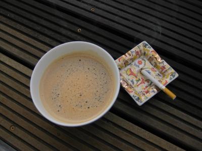 gestern entschloß ich mich dann zu einem definitiven stilbruch, rechnete meine finanzen durch, der dispo, den ich diesen monat in anspruch nehmen muß, ist erst ende januar wirklich wieder ausgeglichen, weil jetzt die mietsicherheit und die doppelte januarmiete richtig reinknallen, fuhr zu ikea, schaute mir dort ein dreisitzig dunkelbaues sofa an, welches eine schlafmöglichkeit in seinem innen verbirgt. es sieht sehr gemütlich aus. „cognac und ein weiches, warmes dunkelblau?“ dachte ich, und fragte mich, ob das wohl paßt, fuhr dann noch hier in der nähe in ein kleines geschäft, in welchem nicht nur schöne holztische, asiatische möbel, deko, und gartenmöbel, sondern auch sehr schöne stoffe sehr günstig angeboten werden. dort sah ich, daß cognac und dunkelblau tatsächlich zusammenpassen. in diesem kleinen geschäft stöbere ich immer wieder mal sehr gern, vor einiger zeit kaufte ich mir dort einen wirklich sehr schönen kleinen aschenbecher für 3,– euro.