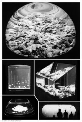 An einem Nachmittag im Aquarium, in einem Hotel, Berlin Mitte, ein Zylinder aus nahtlosem Acryl, ein gläserner Aufzug, darin, aufgerichtet, zwei Statisten für ein Seestück im AquaDom: Geheimnis des Lebens, oder Darwins Evolution, ist sie uns heute noch heilig?