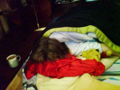 [Arbeitswohnung. Du schläfst fest auf Deinem Vulkanlager.]
