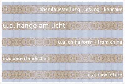 Mit der Abendausstellung und Lesung u. a. hänge am licht findet am Donnerstag, den 30.04.2009, – zu guter Letzt – die letzte Veranstaltung im gutleut 15 ausstellungsraum statt.