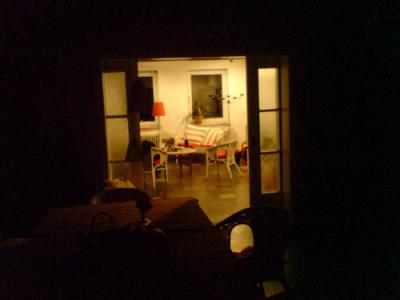 Danach fuhr mich die Veranstalterin an meinen Nacht-Ort. Es ist derzeit Messe in Hannover, Agro-Tech, na ja, der Name… jedenfalls waren keine „normalen“ Hotelzimmer mehr frei, nicht solche mit einigermaßen plausiblem Preis. So brachte sie mich bei den Herrenhäuser Gärten in einem „Naturfreundehaus“ unter, einer Mischung aus Herberge für, hm, „gestandene Jugendliche“ und Vereinshaus… was ich ja immer ganz reizvoll finde, sowas. Aber wir fanden es nicht, erst nicht, wir rauschten mit dem Auto durch die unbeleuchteten Alleen der Herrenhäuser Nacht, bogen hier ab, falsch, da, auch falsch, dort, wiederum falsch…. irgendwann mußten wir wenden. Nix erleuchtet, nur wenige Hauslichter weit zurückversetzt von der Straße, hinter Rasen Bäumen Busch.