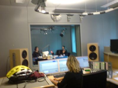 Pünktlich im ARD-Hauptstadtstudio, Regie 3, Eva Mieslinger für die Technik. Aussteuern der Stimmen, vorher noch kurz „Lage”besprechung: meine Sprecherinnen sind keine professionellen, aber: wunderbar. Wie ich es mir dachte. Auch Mieslinger begeistert: völlig unabgenutzte, unbekannte, ausgesprochen beseelte Stimmen. Kavita-Janice Chohan und Simone Barrientos Krauss. Aber mit nicht-Profis zu arbeiten, bedeutet an sich, sehr viel mehr Zeit aufzuwenden.