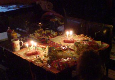 Nachmittags, n o c h vor diesem Freundesbesuch, war dann >>>> Terpsichore hier. Lange habe ich sie nicht mehr gesehen. Körperlich erinner(t)e ich mich ihrer besonders schönen Brüste, auf die sie mit großem Recht auch stolz ist; dennoch schritt erst einmal eine quasi-Fremde in die Arbeitswohnung. Wir tranken Latte macchiato, sie futterte Kekse, wir hörten Musik; v i e l Musik. Ich las ihr noch etwas vor. Dann, kurz nach ihr, brach ich zur Familie auf. Besorgte die Zwillingskindlein, लक ging noch mal etwas für den Kindleinsgeburtstag besorgen, gegen 21 Uhr zog ich dann wieder zum Freundestreffen ab.