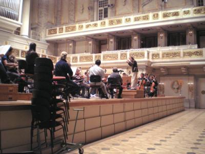 Es gehört aber a u c h zu solch einem Riesenapparat wie Orchester und Verwaltung des Konzerthauses, daß sich manches gar nicht herumspricht, auch nicht angesprochen wird; und so gab es dann auch wieder – wie seinerzeit bei >>>> der Spanientour – große Fragezeichen meinetwegen, vielleicht auch Unbehagen. Also, nach Absprache mit Zag, eine kleine Ansprache meinerseits ans Orchester direkt nach der Pause. Was mir a u c h wichtig ist: daß das Orchester fast wichtiger als die Sänger ist in einer modernen Oper („modern“ meint alles mit und nach Wagner; in einigen Fällen auch Kompositionen von zuvor), daß s i e, die Orchestermusiker, die entscheidende Vermittlungsinstanz zum Hörer sind und nicht die Vokalsolisten, einfach, weil bei denen – es ist ein wechselseitiges Verhältnis – das „Star“sein im Vordergrund steht – selbst da, wo sie es nicht wollen; das Publikum trägt es ihnen an. In einem Orchester aber ist der einzige Star – der Klang dieses Orchesters. Von ihm lebt es, von ihm leben ganze Opern.