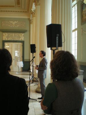 Eröffnung der kleinen Ausstellung zu Ernst Křenek im Carl-Maria-von-Weber-Saal: Begrüßung durchden >>>> Intendanten Nordmann, dann spricht Florian Schönwiese vom >>>> Křenek-Institut. Zugegen ist auch