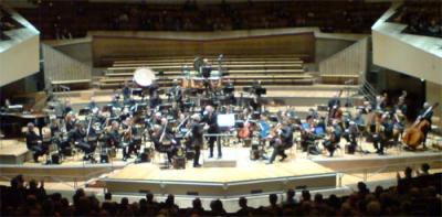 Die ich mir trotzdem nicht machte – bzw. waren es nur wenige, weil >>>> Heinz Holligers Musik, der ich zum ersten Mal begegnete, als ich fünfzehn war (>>>> „Siebengesang”), derart fesselnd ist und dabei von einer großen Schönheit, die sich niemals zerfasert… erstaunlich hier, weil Tonscherben die kurzen Motive ja gerade ständig zersplittern läßt; doch ist dabei gar keine „Entropie”, eher stellt sich im Ohr das Gegenteil her: Zusammenhang, schwingendes Kontinuum, wenn auch ohne ein auf Anhieb, schon gar ausgeführt identifizierbares Thema. Die Musik beginnt mit einer Art Schlag, und sofort ist die ganze Aura dieser „Orchester-Fragmente” genannten Komposition da: schon steigt aus ihr eine seltsam „weltmusikalisch” von Percussion durchsetzte Seligkeit auf, dreiklängig, hatt’ ich den Eindruck, breiter werdend, die Bläser in Wellen, die sich geräuschhaft auflösen, ja zerflirren. Eine Peitsche knallt. Es wird sehr still, Musik wie eine Handlung, die sich immer wieder erheben möchte, aber immer wieder wegsinkt. Abermals der Versuch einer großen Geste: nicht ernüchtert, nur vorsichtig: so wird erwidert. Die Bläser blasen kräftig, aber stumm, man hört alleine die Atemgeräusche. Für diese Art Musik ist der Saal der Philharmonie, der gut besetzt, wenn auch nicht ausverkauft war, wie geschaffen (n o c h besser, überhaupt den akustisch perfekten Saal hat die Kleine Philharmonie, aber für sie war die Besetzung zu groß)… Sahnig die Celli dann, erzählend, wegbrechend… ein Tasten über die Trommel; und Heinz Holliger, unterdessen alt geworden, aber weißGöttin viril, hebt die Hände mit zählenden Fingern… Es gibt in Tonscherben absolut keine Redundanz, aber die Konzentration führt nicht ins Abstrakte, sondern alles ist e i n Klang.