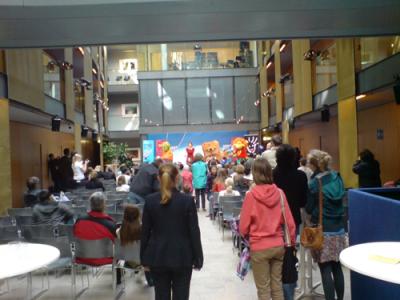 Wunderschöner Nachmittag mit meinem Sohn. Auch wenn das Casting keinen zehnjährigen Jungen suchte, sondern Mädchen, die zudem gut singen können, zwischen 12 und 15 Jahre; weder das eine noch das andere noch auch das dritte vermag mein Bub zu bieten. Aber an einem kleinen Schauspieler-Workshop nahm er teil. Ich sah da zu. Hinterher ließ er sich von drei Kinderdarstellern, die beim workshop mitmachten, höchst freundliche Jungstars Autogramme geben. Vor dem Workshop waren wir noch durchs Brandenburger Tor flaniert, hatten ein Eis gekauft, waren weiterflaniert um den Reichstag herum, durchs Regierungsviertel Richtung Spreebrücke, die am Anfang von ARGO in die Luft fliegt.