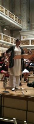 „Ach Mensch, was mach ich da denn immer falsch im Tempo?“ Schaut zu Zag, der lächelt. „Hier mußt du… schau…“ Denn Samel, der den selbstverständlich Text auswendig weiß, spricht ihn nach den Noten… An liebsten, hieß es, spräche er f r e i…. aber dann wäre die ohnedies schon zu große Gefahr, aus Tempo und Partitur zu fallen, zu groß… Übergang, das Orchester läuft hoch. „Können wir das bitte einmal“ so Zagrosek „mit Mikro probieren?“ Was ich für eine gute Idee bei diesem irrsinnig großen Klangkörper halte, zumal dann, wenn das Haus voll ist. Um Sie zu erinnern: Sichern Sie sich bloß Ihre Karten! Netzverbindung unten. „Herr Gänsefuß, Frau Gänsekraut…“ Ja, jetzt ist es sehr deutlich, g u t deutlich, auch wenn es eine Irritation der Klangquelle gibt… wie bei einem phasenverschobenen Anschluß…. Aber geht da nicht auch etwas Musik mit ins Mikro? Höre ich das falsch? „Meine Damen und Herren, ich danke Ihnen. Bis morgen.“