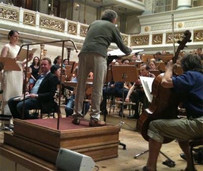 Die Musiker nehmen langsam ihre Plätze ein, wir saßen draußen vorm Bühneneingang, frühstückten, tranken Kaffee, aßen eine Kleinigkeit. Zag steht bereits am Pult, Kirch kommt herübergrinsend herein, Friedemann bespricht sich mit Zagrosek, Frau Diener erscheint, Zagrosek hebt den Taktstock….