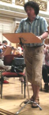 „Bitte noch mal… ganz schlank, ganz schlank. Was in Ihren Stimmen an Akzenten steht, bitte nur andeuten, nicht ausspielen….“ – „Diese Stelle an 21 müssen wir noch etwas ausdünnen, vier vor 21 bitte…“ – „Das ist immer noch zu laut, die Klarinette bitte n i c h t mezzoforte, sondern mezzopiano… bitte nochmal. – sehr gut. So probieren wir das jetzt. Eins vor 19 -:“ -„Ah, und jetzt aufwogen, z w i s c h e n die Stimme!“