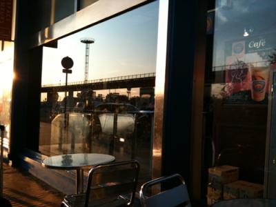 Einen Café crème besorgt, dann nach draußen vor die Halle gesetzt und geraucht.