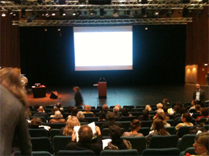 Ganz voll war der riesige Saal des Hauses der Kulturen der Welt nicht. Aber voll. Und dies, obwohl die Eröffnungsveranstaltung nicht eben mit Entertainment’s leichtgeschürzten Freuden lockte: Juan Goytisolos Name ist nicht unbedingt mehr bei allen Lesern bekannt, die heutzutage Zielgruppe des Marktes sind. Zumal trug er auf Spanisch vor. Und einleitende Begrüßungsworte von Veranstalter und Mitveranstaltern, die vielerlei Dank sagen müssen und möchten, sind jedermanns Popsache auch nicht. Also dafür war es p r o p p e voll: Ein Zeichen, welchen kunstgesellschaftlichen Rang das ilb unterdessen, und mit Recht, sich erstritten hat.