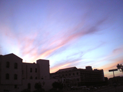 Bevor aber der Himmel so leuchten konnte und nachdem wir diesen Zahnarztbesuch hinter uns hatten, durchschritten wir Ortigias Gäßchen, nahmen mein Junge eine Sprite und wir Erwachsenen jeder eine Lemonata con Sale gegen den Salzverlust: eine halbe Zitrone wird in ein Glas gepreßt, worauf frisches gekühltes Wasser kommt und in dieses ein Viertellöffel Salz, das man verrührt. Dieses Getränk beugt jedem Kopfschmerz vor und erfrischt zudem.