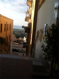 Das neben dem Foyer liegt, in dem der Fernseher läuft und das auf die Gasse hinausgeht. Laptop per Akku, eben zweidrei Schritte getan, erste Morgenblicke geworfen. Wie schön das Meer liegt! – …. ah, die Freunde kommen gerade herunter – da werde ich wohl meinen Reisebericht erst in Berlin abschließen können; es sei denn, ich komme heute nacht noch zum Schreiben und das dann wiederandre Hotel hat einen Internet-Abschluß. In jedem Fall werde ich d i e s e n Brief nachher noch einstellen; gestern spätabends, bei unserm Rundgang durch Girgenti, sah ich einen Internet-Punto. Nur vielleicht dieses noch: agrigentum hieß zu römischen Zeiten der Ort, woraus über die Zeit Girgenti wurde; noch Pirandello, der hiernah geboren wurde und auch beerdigt liegt, auf halber Strecke zwischen der Stadt und Porto Empedocle, hat von Girgenti gesprochen. Erst Mussolini, in seinem Krieg&Ehre-Wahn, stellte, um an die Imperatoren des antike Roms anzuschließen, den alten Namen, freilich italianisiert, wieder her. Ich hingegen bleibe bei Girgenti.