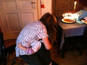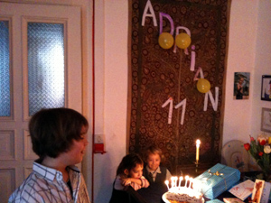 Die engsten Freunde riefen eben an: „Sag dem Jungen nichts. Wir kommen zu euch, um ihm zu gratulieren.”