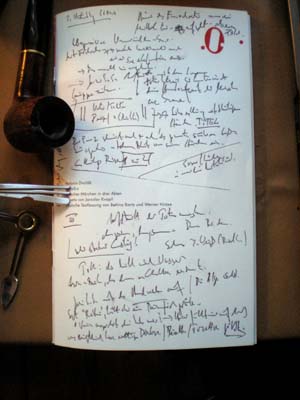 Von sechs bis acht Uhr meine >>>> Rusalka-Kritik fertiggeschrieben; meine Notizen schreibe ich in aller Regel direkt in die Programmhefte: wie das dann aussieht, sehn Sie auf dem Bild.