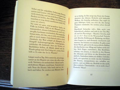 Gut, bzw. schlecht. Aber schon mal ein paar Briefe geschrieben; außerdem muß ich mich noch um zwei avisierte Lesungen kümmern, eigentlich um drei, weil ich auch für Die Fenster von Sainte Chapelle eine Idee habe. – Aber noch mal zur Buchmesse: „Hast du mein Geschenk an dich gesehen?” fragte Verleger Držečnik. Ich wußte nicht, wovon er sprach. „Dann schau Dir mal den Bindefaden an.” Ich wußte nicht, wo, er blätterte auf S. 24, dann 56… brach, dachte ich, das Buch… „das bricht nicht, so ist es ja gemacht, du kannst es knicken, wie du willst.” Zum Vorschein kam dann dieses: