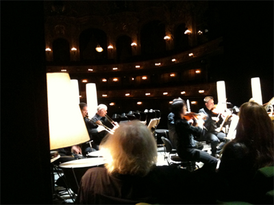 DANN >>>> der zweite Teil des Abends vor. Aber nur wenige, die die Pique Dame vorher sahen, erlebten es, vielleicht fünf oder sechs; alle übrigen Zuschauer, die auf der Bühne in den Kulissen der Pique Dame platznahmen, waren frisch hinzugekommen nachts um elf; es waren zudem gänzlich andere Charactere: fast durchweg jugendlich und unkonventionell, wie von anderer Konfession, – aber da sie doch die Pique Dame zuvor nicht gehört und gesehen, mußte ihnen entgehen, wozu dieses Nachtkonzert der spöttischste Kommentar eines Völkchens war, das gegen Mitternacht in die Realität strömt. An Tschaikowskis so spätromantischem wie verbohrtem Fühlen, das schließlich Erlösung im Wahnsinn sucht – seine Musik ist immer auch hochidolisiertes Zelebrieren von Verklemmtheit, persönlicher und gesellschaftlicher, wie die spätromantische Musik überhaupt -, an die Klang-Ekstase also hysterischer Hyperstasierungen schlägt Purcell wie an Tschinellen: denn wären es, sagen seine Naturgeister, Glocken, dann wären sie taubhohl – oder, um’s mit Puck zu sagen: