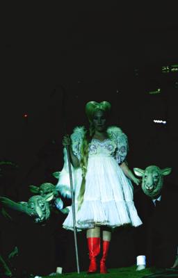 Welche Verirrtheit, sagen sie, wenn doch ein Kuß sie lösen könnte: ganz genau so saßen in AKT II von Reinhardts Pique Dame die Schafe des einkomponierten Schäferspiels da; schon dieses selbst hatten sie durchblökt. Als es vorbeiwar, nahmen sie Platz auf den Fauteuils und sahen der Tragödie so staunend zu, wie nur Schafe können. Bei Purcell bekamen sie Stimme, verwandelten sich in den Naturlaut zurück und in lauter Geister über den Wassern. Dem kam sehr zugute, daß das Ensemble La Capricciosa auf alten Instrumenten spielte. Barockgeige, Barockcello (noch ohne den Stachel zwischen den Knien gehalten)… ungefähre Tonklänge, flirrend und vom Oszillieren des Übergangs der Dämmerungen, dazu schon mal Vogelstimmen vom Band eingespielt – und überhaupt –