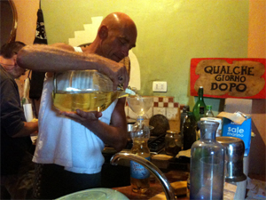 Hm, okay, sie hätten gekokelt. Usw. Und, „aber nur etwas!”, schwarze Schokolade gegessen. – Später schaute unsere Nachbarin herein und berichtete, es sei auch Eugenio nicht so wahnsinnig gutgegangen gestern nacht. Habe sie gehört.