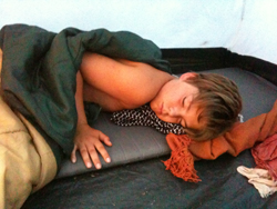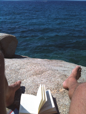 Freitag, dem 29. Juli 2011,mit dem ich nunmehr angekommen wäre: nämlich heute. – Doch halt! Hab ich schon von der Crema catalana erzählt, die meinem Jungen momentlang die Beherrschung nahm? Heut früh indes nicht erwachen, d a s tat er so:(Ich weiß nun nicht recht, was weitererzählen. Wir machen nunmehr Ferien. Es sei denn… nun ja, es fällt mir eine Erzählung ein, an der >>>> Le Duchesse teilhaben könnte. Doch glaube ich das nicht. Freilich sind diese Frauen, die auf den Felsen liegen, entzückt von ihren Partnern gestreichelt, von enormer Präsenz, vor allem die Körper. Zum Beispiel fanden sie selbst ihre Brüste entrückend, und der Gefährte war eine Art Diener, der völlig zu recht avancieren soll. Ich tät’s an seiner Stelle auch. Fehlt Dir die Sprache, wird die Erscheinung zur Göttin – was etwas, zu Zeiten, höchst Gerechtes hat, dem wir uns, die Männer, beugen sollten und – beugen. Alle. Wie wir sind.)